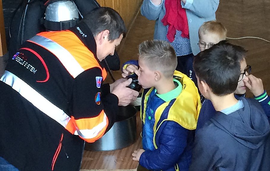 ORAVSKÁ JASENICA/BABÍN. Po veľkom úspechu prednášky v Základnej škole Brehy v Námestove, kde sme sa venovali prevencii, nás požiadali o návštevu aj ďalšie školy. V piatok 29. mája sme prišli aj s potápačmi do Oravskej Jasenice a Babína. Deti sa na našu návštevu veľmi tešili. Na vyskúšanie dýchacieho prístroja potápačov okamžite vytvorili dlhý rad. Pozorne počúvali, ako pomáhame ľuďom. Zaujímali sa o našu prácu, techniku,