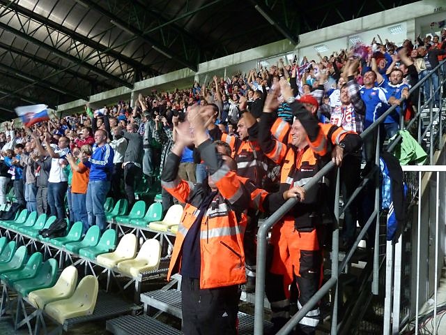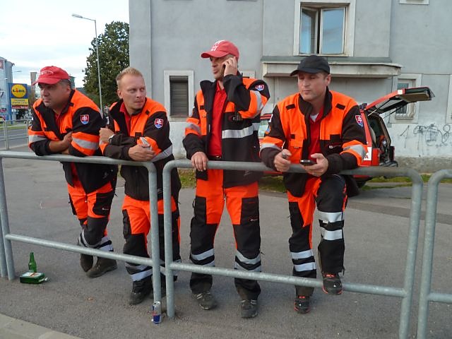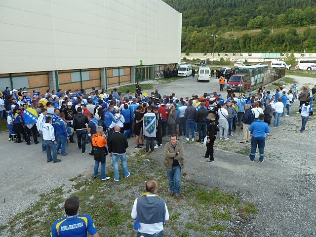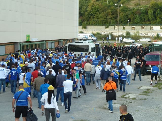 Obrovskú radosť z víťazstva malo množstvo fanúšikov hostí. Pod Dubeň ich pricestovalo viac ako šesť tisíc, čo bolo poznať nielen na štadióne, ale aj v jeho okolí aj meste. Pre ich množstvo a balkánsku horkokrvnosť boli bezpečnostné opatrenie mimoriadne. Ich súčasťou boli aj naši členovia, ktorí tentoraz prišli aj so štvorkolkami. Podľa pokynov polície sme sa rozmiestnili v meste a okolí štadiónu. Balkánci sa však ukázali ako fanúšikovia, ktorým išlo iba o futbal a nespôsobili žiadny problém. Na štadión prichádzali s úsmevom a dobre naladení. Viacerí využili možnosť odfotiť sa s nami. Po víťazstve 2:1 oslavovali postup na majstrovstvá sveta, zatiaľ čo Slováci odchádzali so zvesenými hlavami.
