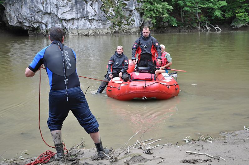 KRAĽOVANY. Naši členovia pri pátraní po jednej z utopených osôb namerali v Orave pri Dierovej sonarom hĺbku vody viac ako 30 metrov. Toto číslo sa nám zdalo veľmi vysoké, preto sme sa na miesto vrátili s moderným sonarom. Posádka člna niekoľkokrát preplávala úsek, kde mala byť 34 metrová hĺbka. Sonar naozaj ukázal nezvyčajnú hĺbku, ale len 13 metrov, čo je na približne 50 metrov širokú Oravu aj tak veľa.