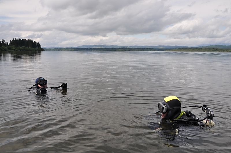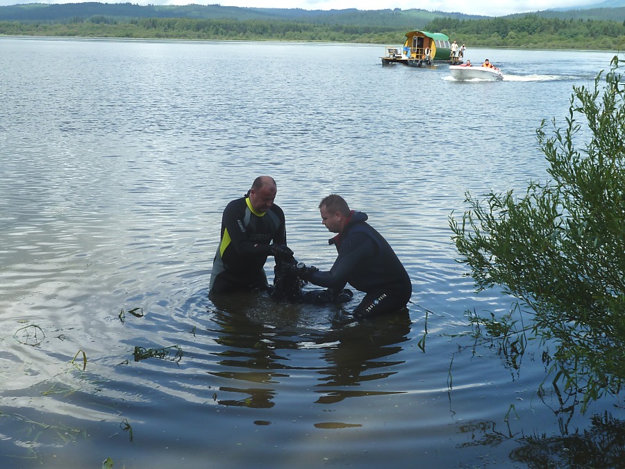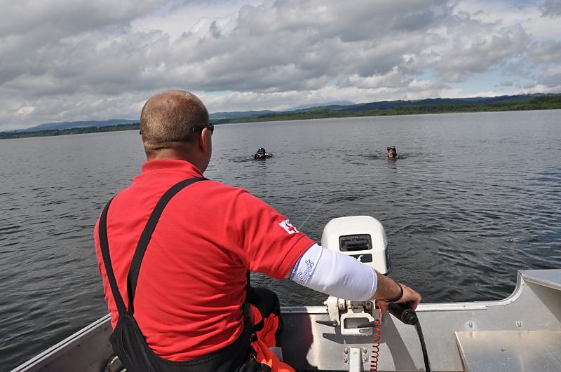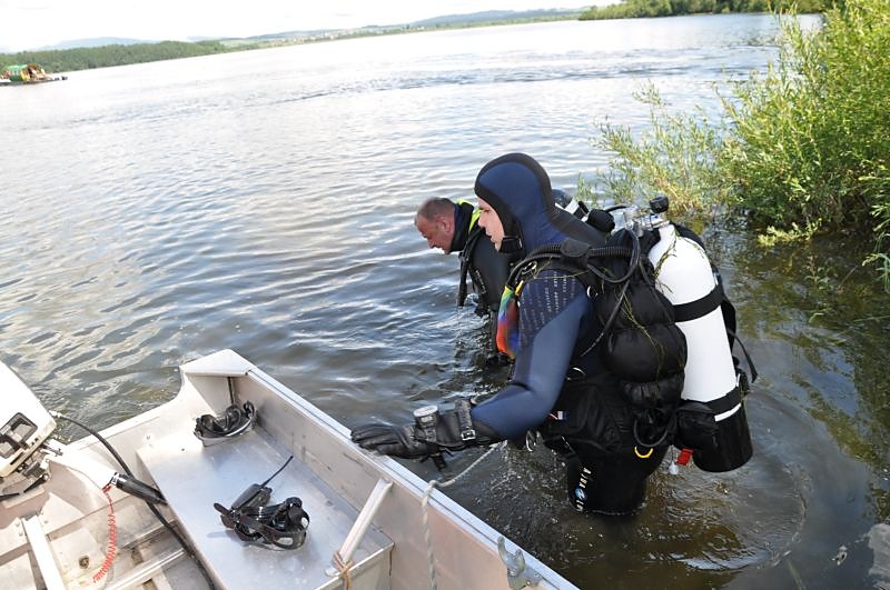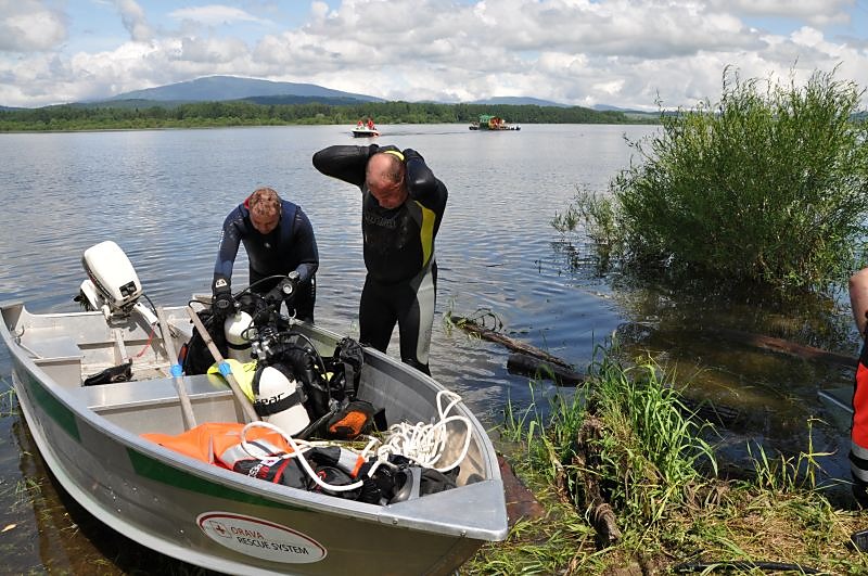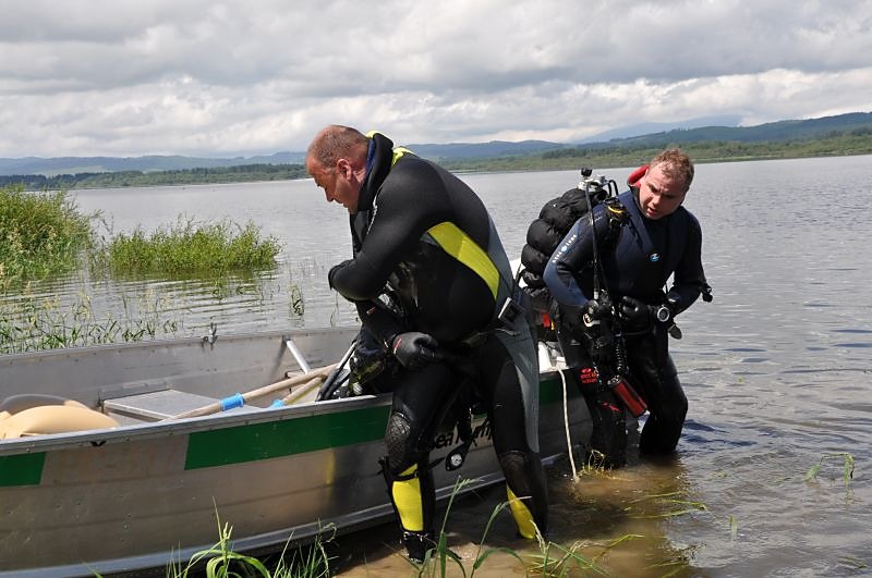 V utorok ráno sa do hľadania zapojili aj naši členovia z Orava rescue systém s potápačmi. Nevedeli sme presne, kde sa čln nachádzal počas zásahu bleskom. Preto sme potápačov poslali do sto metrovej vzdialenosti, priamo oproti udiciam, ktoré ostali na brehu. Pátranie komplikovala mútna voda s viditeľnosťou len na pol metra. Naviac je v tých miestach veľa vodných rastlín, konárov a pňov, na ktorých je zachytených množstvo rybárskeho silónu. Potápači sa do neho neustále zamotávali.