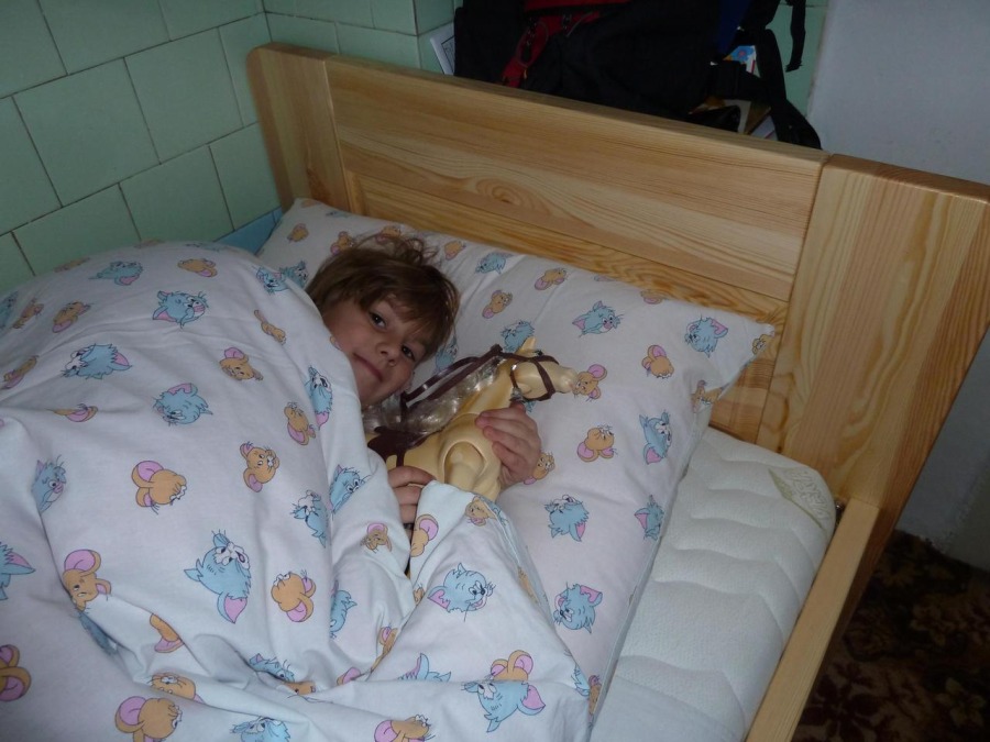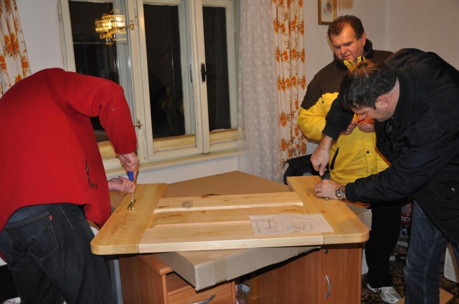 Deti spávali na starom gauči v kuchyni, preto sa veľmi potešili dvom novým posteliam a matracom. V detskej izbe im okrem nich a hračiek pribudol nový písací stôl so stoličkou, v kuchyni mikrovlnka, v mrazničke mäso, v kúpeľni pomôcky na zubnú hygienu. Priniesli sme aj zemiaky a ovocie. Dedo mal najväčšiu radosť z majstra, ktorý bral miery na tri nové plastové okná. Tie staré sú v dezolátnom stave a teplo cez ne uteká.