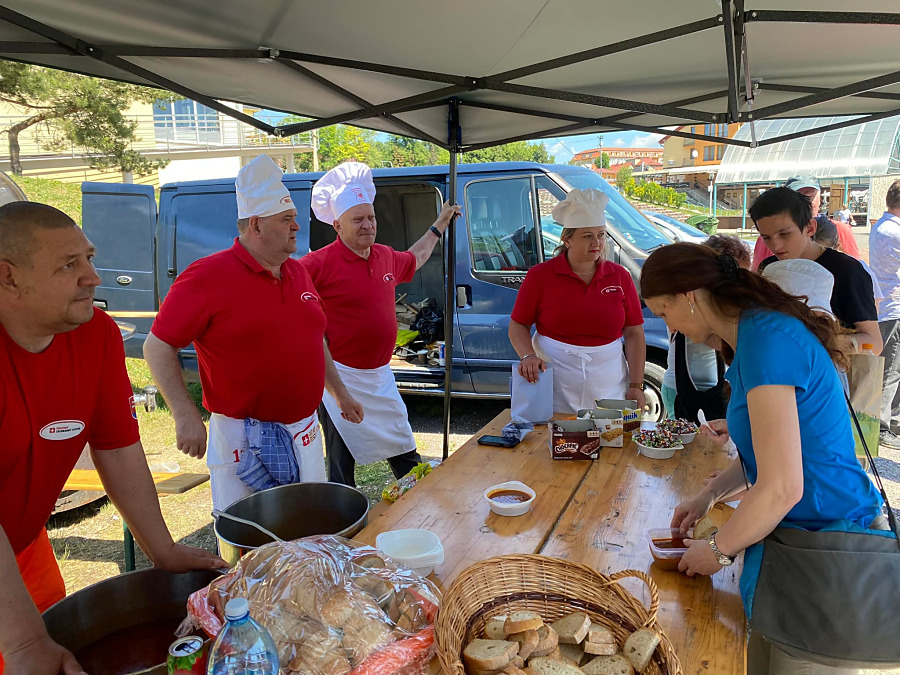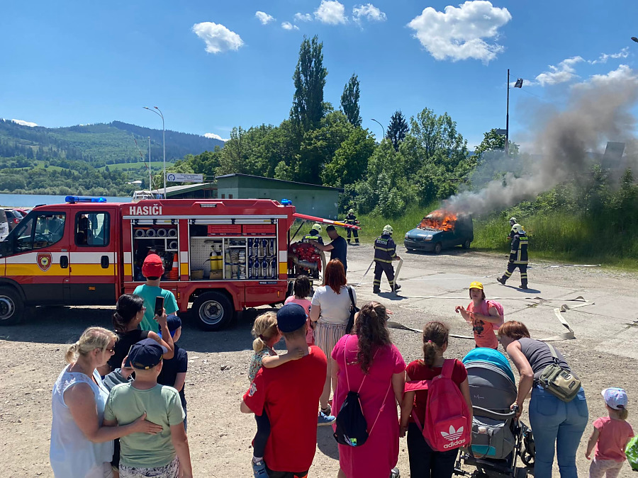 Deti si pozreli ukážku zásahu hasičov, hasenie aut, mohli si pohladkať psíkov, povoziť sa na člne či štvorkolke. Na záver sme navarili chutný guľáš.