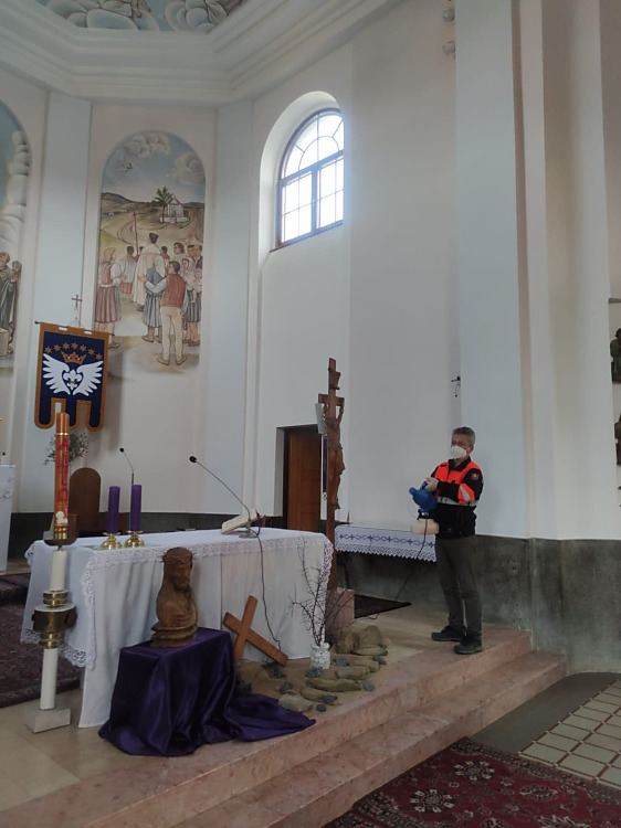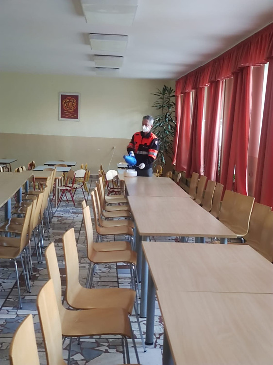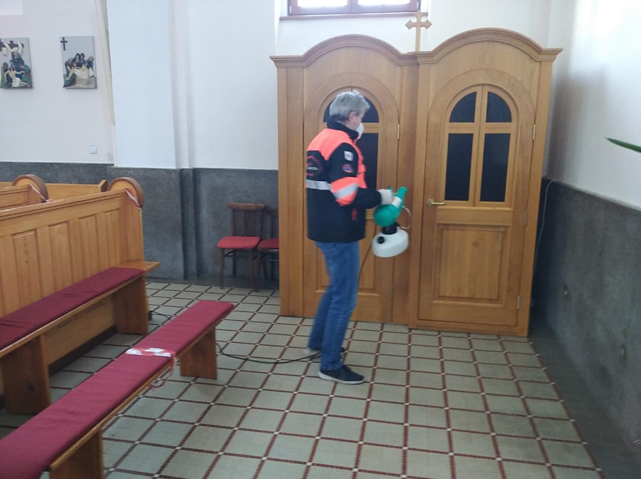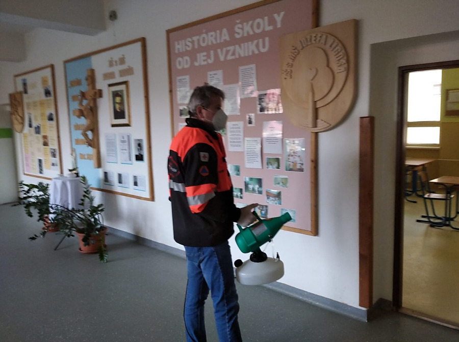CHLEBNICE. Správca farnosti v Chlebniciach a riaditeľka ZŠ s MŠ v Chlebniciach nás požiadali o dezinfekciu priestorov kostola a márnic, pretože tam mali pohreb osoby, ktorá zomrela na covid. V škole a škôlke mali viacero prípadov tohto ochorenia. Radi sme im vyhoveli a dezinfekciu urobili.