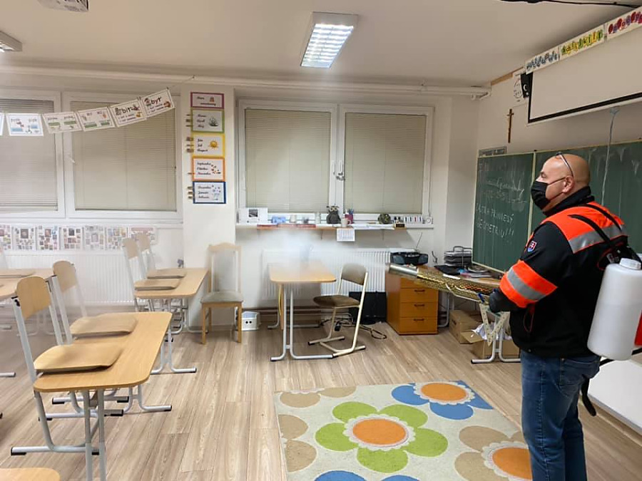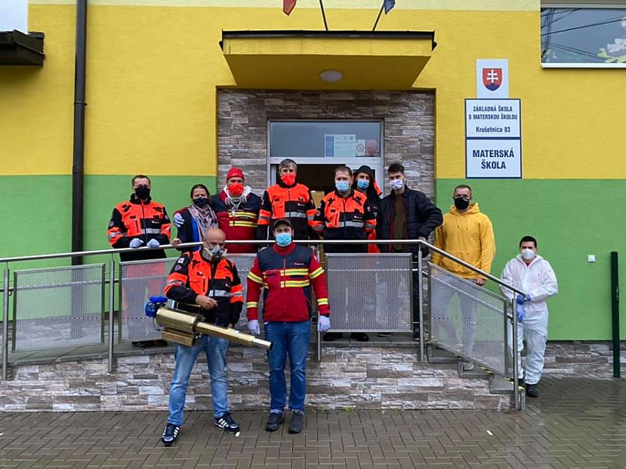 ORAVA. Počas uplynulého týždňa naša čata dobrovoľníkov dezinfikovala viac ako 20 základnýc,h materských škôl, úradov, zdravotníckych zariadení. Už nám dochádzajú ochranné pomôcky aj dezinfekcia, ktorú sme dostali od firmy Robin plus s.r.o. Partizánske, ktorá nám darovala 1000 litrov koncentrovaného dezinfekčného roztoku, z ktorého sa dá pripraviť až 7000 litrov dezinfekčného roztoku.
