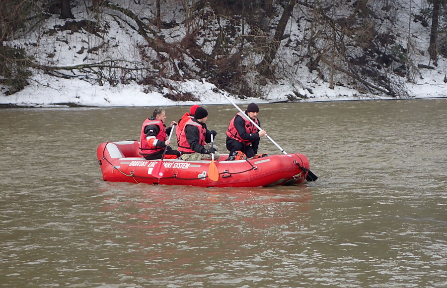 Naši potápači prehľadávali rieku z člna, ďalší jazdili na štvorkolkách okolo mesta.