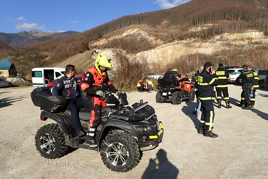 Pátranie pokračovalo ráno, polícia upozornila na to, že muž môže mať pri sebe zbraň. Pár minút po rozdelení a odchode ľudí do ťažkého terénu, Si náš člen cez ďalekohľad všimol vysoko nad jazerom niečo modréKeďže muž mal na sebe modré rifle, išiel to preveriť na štvorkolke spolu s domácim obyvateľom. Bol to mladík, no žiaľ, pomôcť sme mu už nemohli.