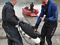 Na čln nastúpili štyria naši potápači. Spoliehali sa na sonar. Voda bola taká mútna, že nebolo vidno na desať centimetrov. Naviac tam bol silný prúd, ktorý prinášal konáre a kusy dreva.