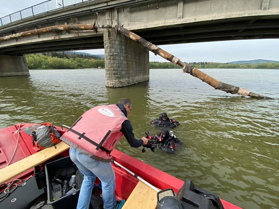 NÁMESTOVO. Naši potápači spravili prieskum vodovodného potrubia na moste do Námestova, ktoré sa odtrhlo a skončilo vo vode Oravskej priehrady. Oravská vodárenská spoločnosť zásobovala cez toto potrubie Námestovo a okolité obce pitnou vodou. Potrubie dlhé 150 m a vážiace približne sedem ton nebude jednoduché vytiahnuť z vody, lebo v určitých miestach je zaborené v hlbokom bahne.